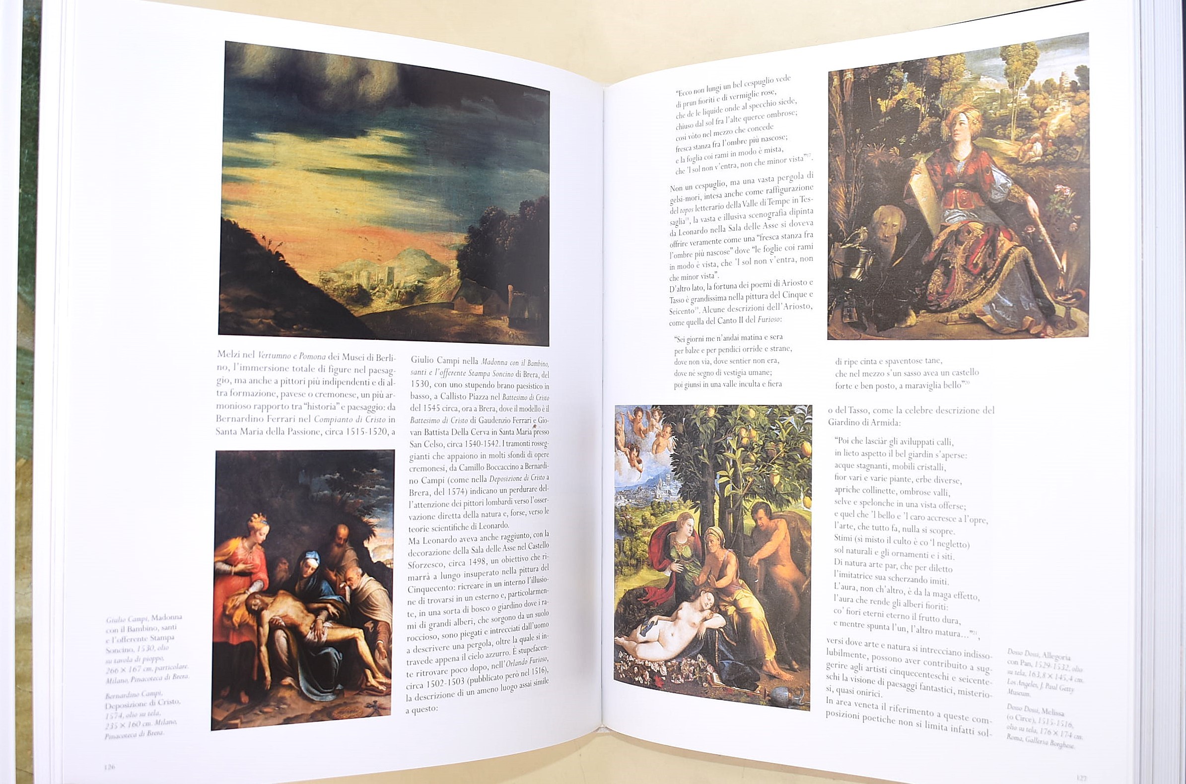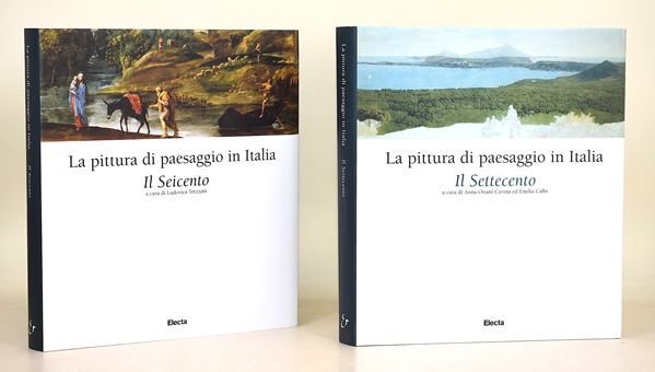 La Pittura di Paesaggio in Italia. Il Seicento, Milano, Electa, 2004. In-4° (286x255 mm). Pagine: 389. A cura di Ludovica Trezzani. Copertina rigida in piena tela con sovracoperta e cofanetto. Edizione illustrata. Ottimo stato complessivo. La Pittura di Paesaggio in Italia. Il Settecento, Milano, Electa, 2005. In-4° (286x255 mm). Pagine: 343. A cura di Anna Ottani Cavina ed Emilia Calbi. Copertina rigida in piena tela con sovracoperta e cofanetto. Edizione illustrata. Ottimo stato complessivo. La pittura di paesaggio in Italia. Il Seicento / La pittura di paesaggio in Italia. Il Settecento, due volumi dedicati allo sviluppo della pittura di paesaggio nella tradizione italiana tra XVII e XVIII secolo. Le opere analizzano l’evoluzione del genere, i principali artisti e i contesti culturali, con particolare attenzione ai rapporti tra natura, rappresentazione e gusto collezionistico. Pubblicazioni riccamente illustrate di carattere scientifico, di riferimento per lo studio del paesaggio nella pittura italiana.