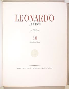 Elegante pubblicazione dedicata all’opera di Leonardo da Vinci, composta da tavole a colori di grande formato accompagnate da un testo introduttivo. Il volume presenta una selezione di capolavori dell’artista, con particolare attenzione agli aspetti pittorici e compositivi. Edizione illustrata di pregio, di carattere divulgativo, volta a valorizzare la produzione leonardesca attraverso riproduzioni di alta qualità.