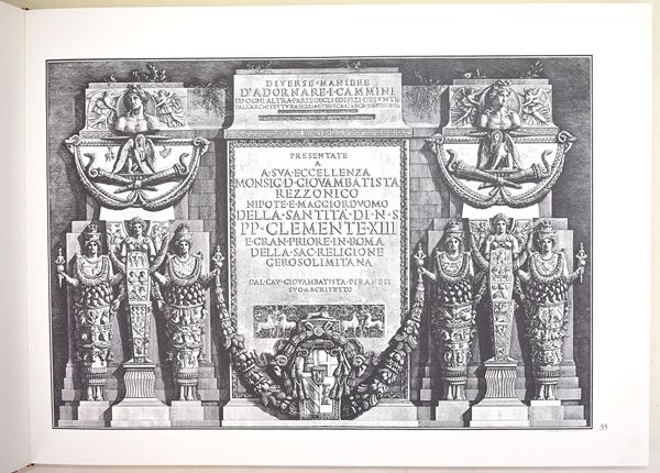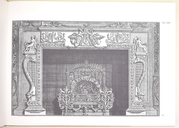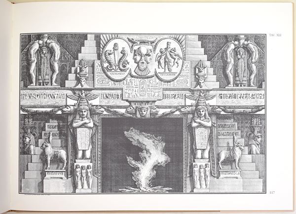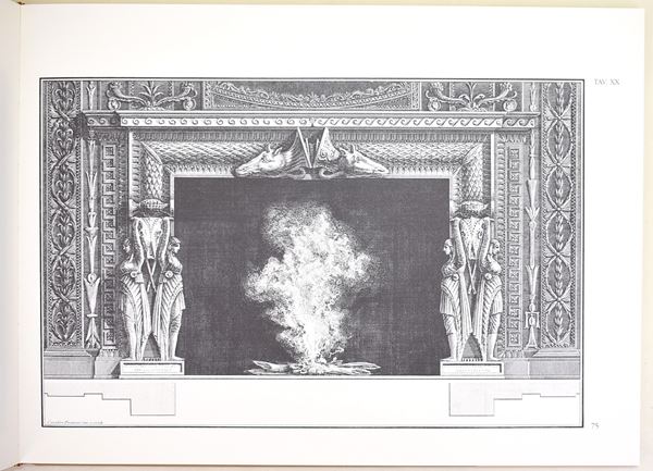 Carnago (VA), SugarCo Edizioni, 1992. In 4° (310x415 mm). Pagine: 170. Copertina rigida con sovracoperta e cofanetto. Edizioni illustrata. Ottimo stato complessivo, ad eccezione di una piccola apertura al cofanetto. Volume dedicato ai celebri disegni e incisioni di camini progettati da Giovanni Battista Piranesi, esempio significativo della sua attività nel campo delle arti decorative e dell’architettura d’interni. L’opera presenta una raccolta di modelli caratterizzati da ricche invenzioni ornamentali e richiami all’antico. Pubblicazione illustrata di interesse per lo studio della grafica, del design e del gusto neoclassico.