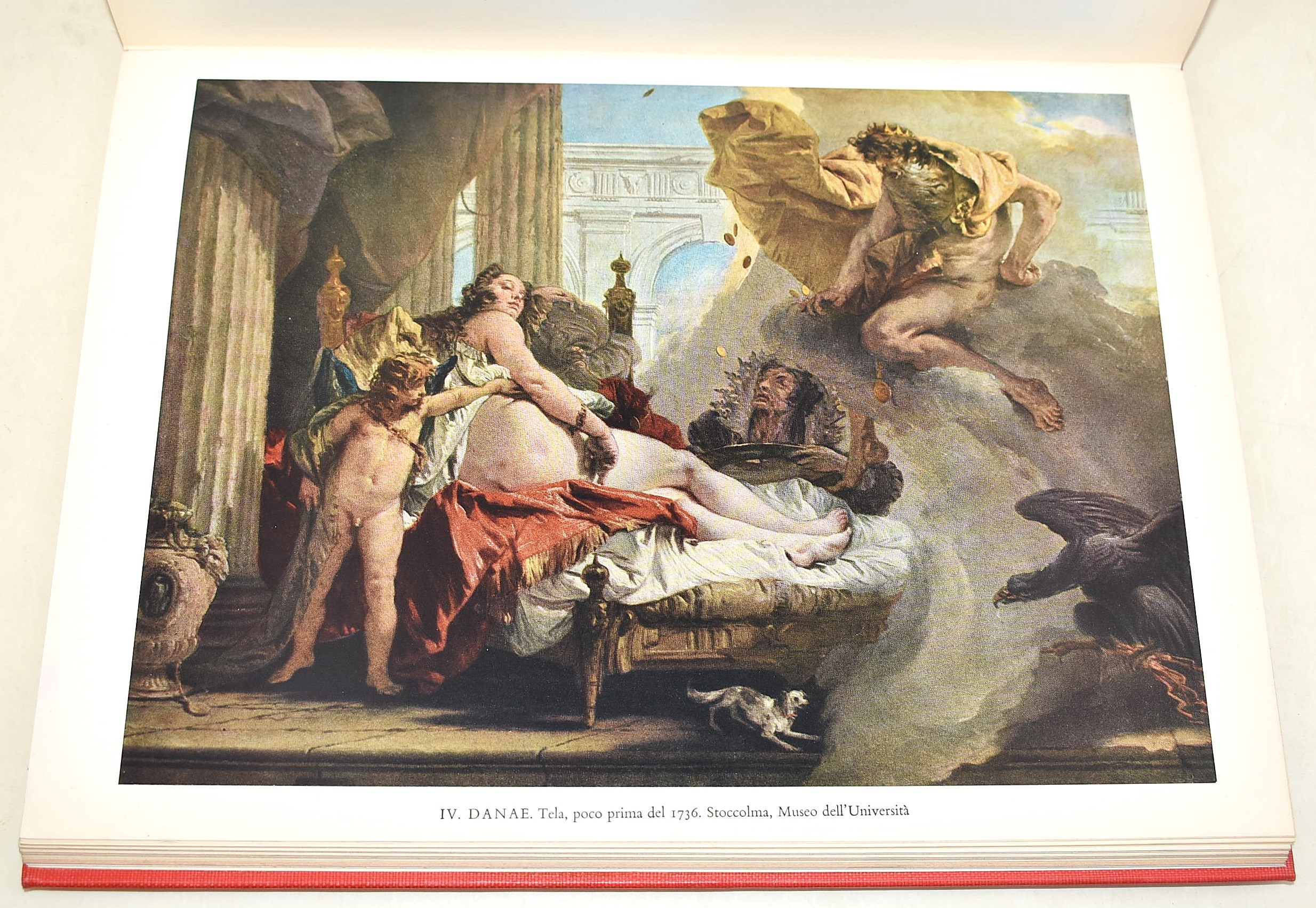 Due volumi dedicati alla produzione artistica della famiglia Tiepolo e in particolare a Giambattista Tiepolo, tra i maggiori interpreti della pittura veneziana del Settecento. Il primo costituisce il catalogo illustrato di una mostra dedicata ai disegni di Giambattista, Domenico e Lorenzo Tiepolo provenienti da importanti collezioni pubbliche e private. Il secondo, curato da Antonio Morassi, offre una sintesi critica sull’opera di Giambattista Tiepolo attraverso saggi e apparato iconografico. Pubblicazioni illustrate di interesse per lo studio della pittura veneziana del XVIII secolo.